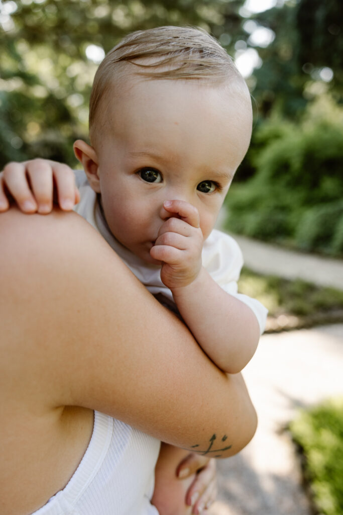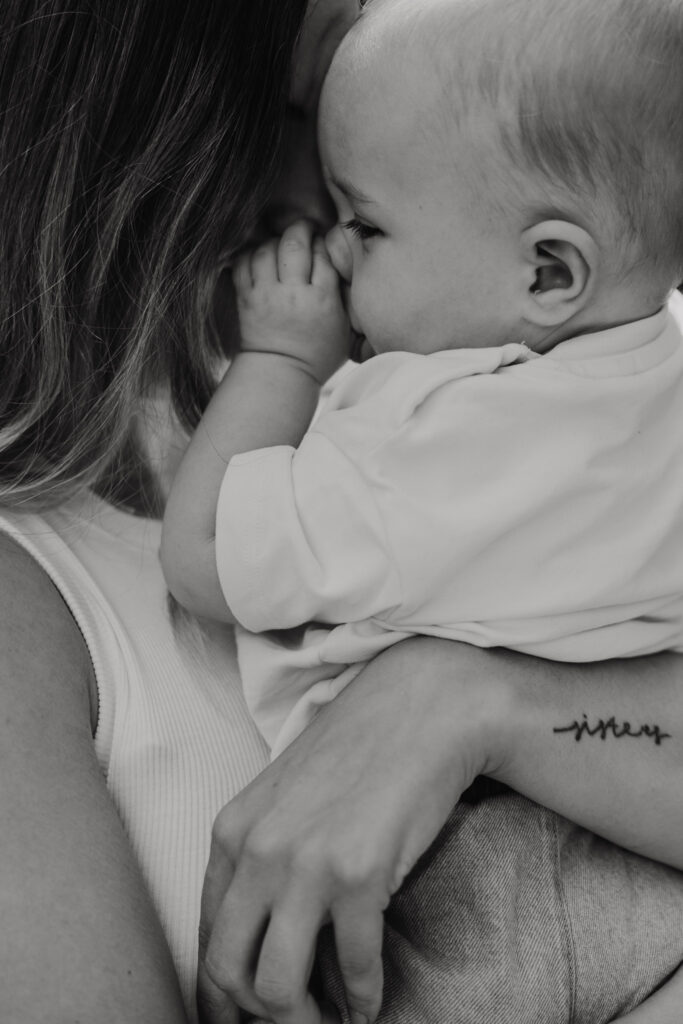Zij won de shoot tijdens mijn moederdagactie, maar vanaf het moment dat we elkaar ontmoetten, voelde niets alsof het “gewonnen” was. Het voelde alsof het zo moest zijn. Alsof dit precies het juiste moment was om hen samen vast te leggen — zij, liefdevol en warm; hij, tien maanden oud en nog vol verwondering over alles wat nieuw, zacht en soms een tikkeltje spannend is.